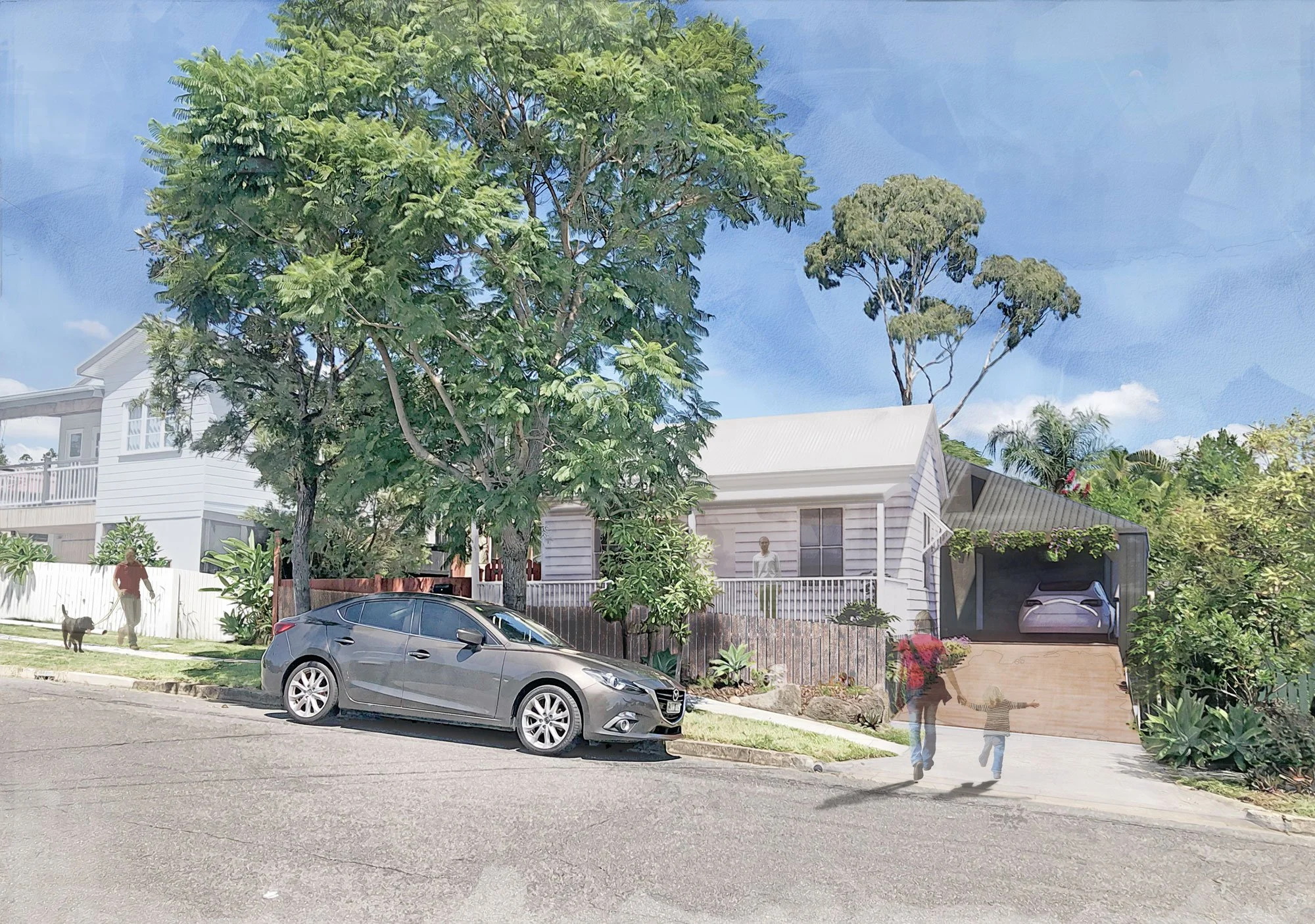 In love with the original 1890’s cottage but not the series of renovations that followed, our client needed to improve the home to suit them now and into the future. We have proposed a new pavilion to the rear which will work with the restored cottage to provide single level living with great connection to the street and surrounding landscape. By designing the new building around the existing mature trees, we have enabled the valued garden to be preserved and made more accessible from the home.