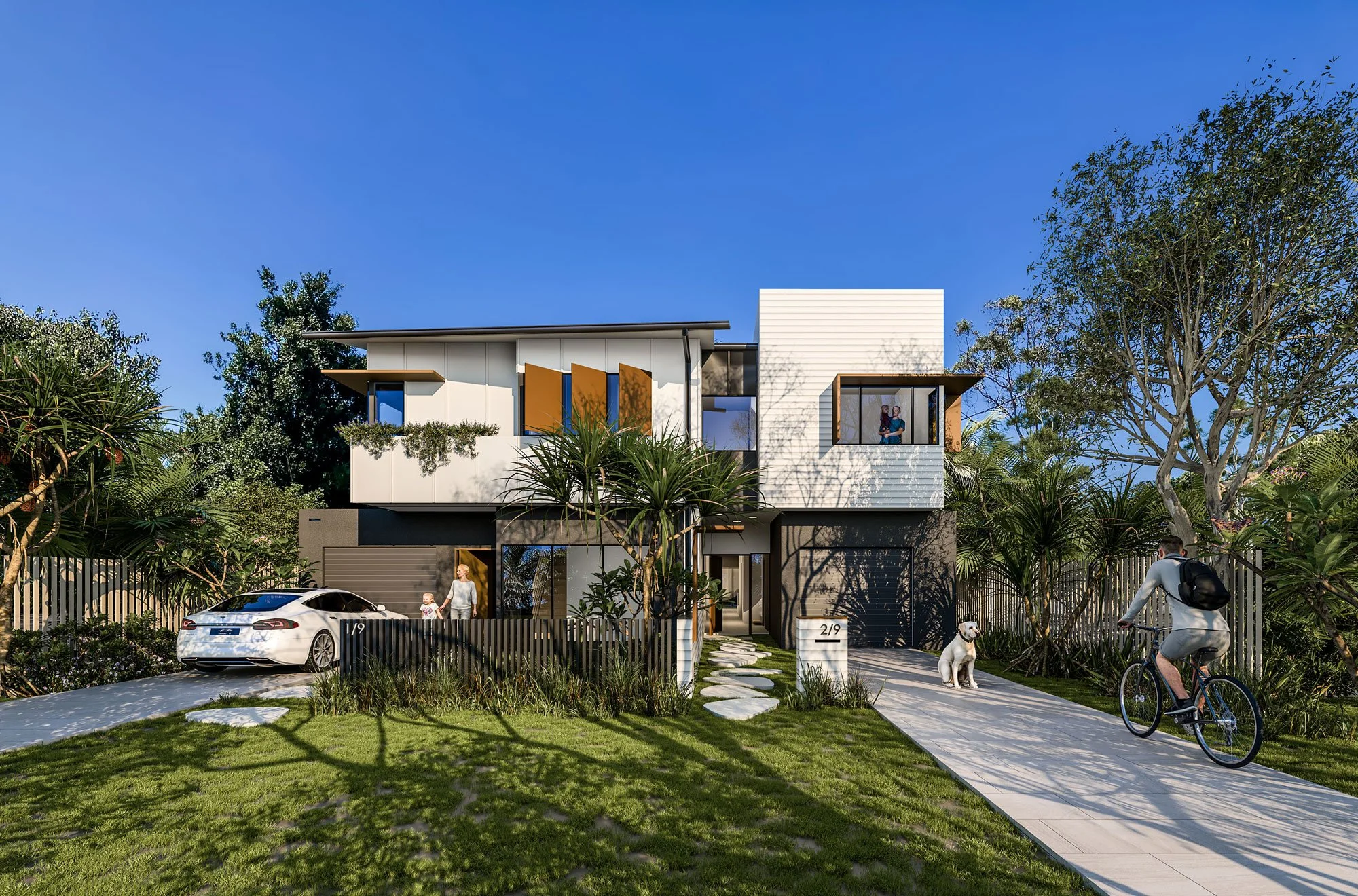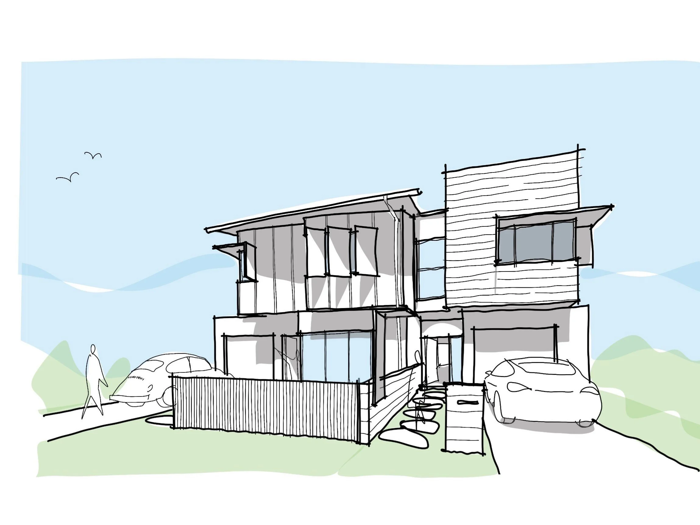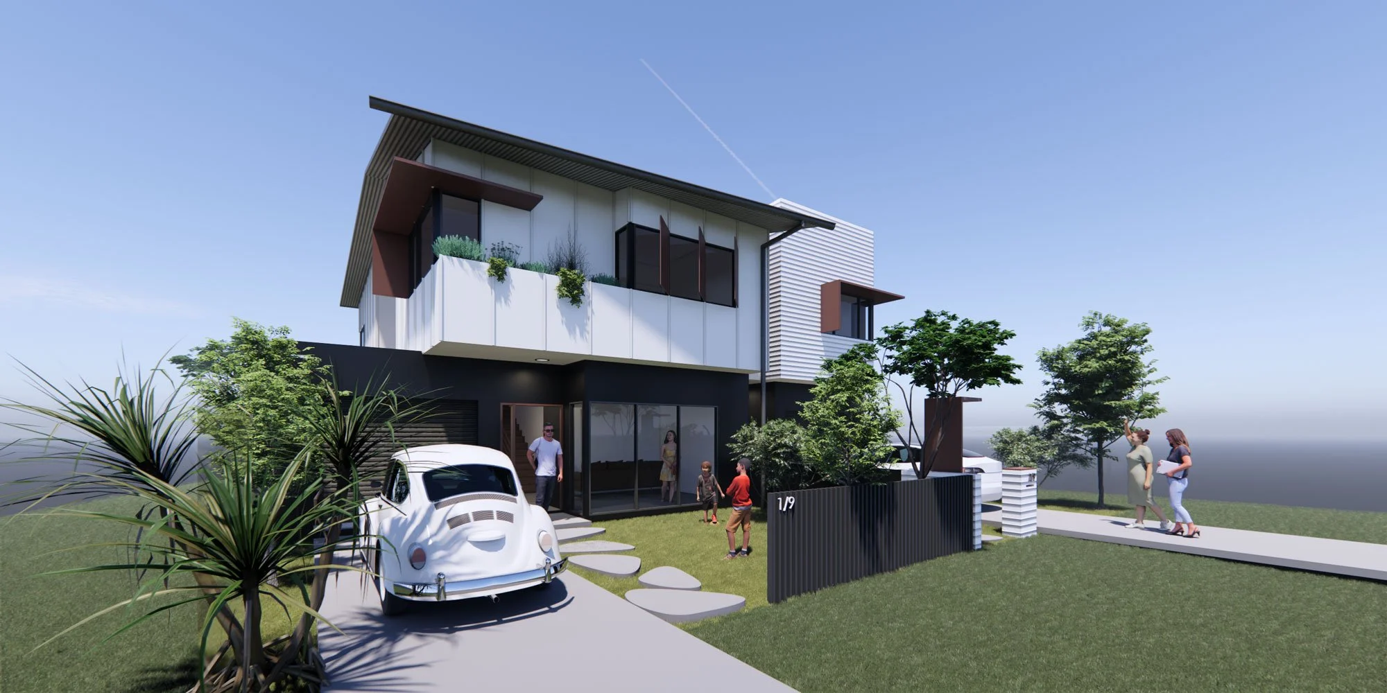 With an opportunity to develop a dual occupancy on this site, we were able to create two unique and equally desirable homes in a quiet street near the lake. Our design uses materials and form to differentiate the dwellings from each other in a way that allows them to sit comfortably together and within the context of the street. The design has also improved the activation of the street through considered layouts that provide flexibility for future residents.